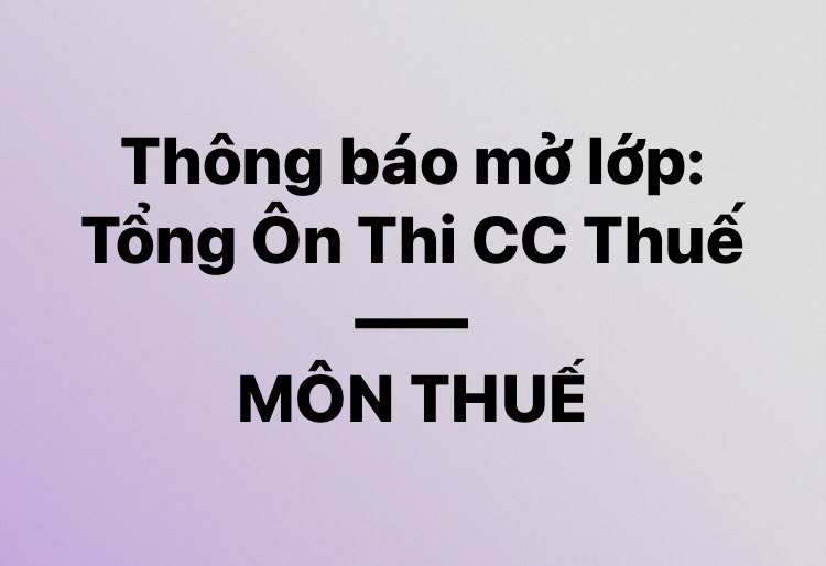 THÔNG BÁO MỞ LỚP: TỔNG ÔN THI CC THUẾ - MÔN THUẾ